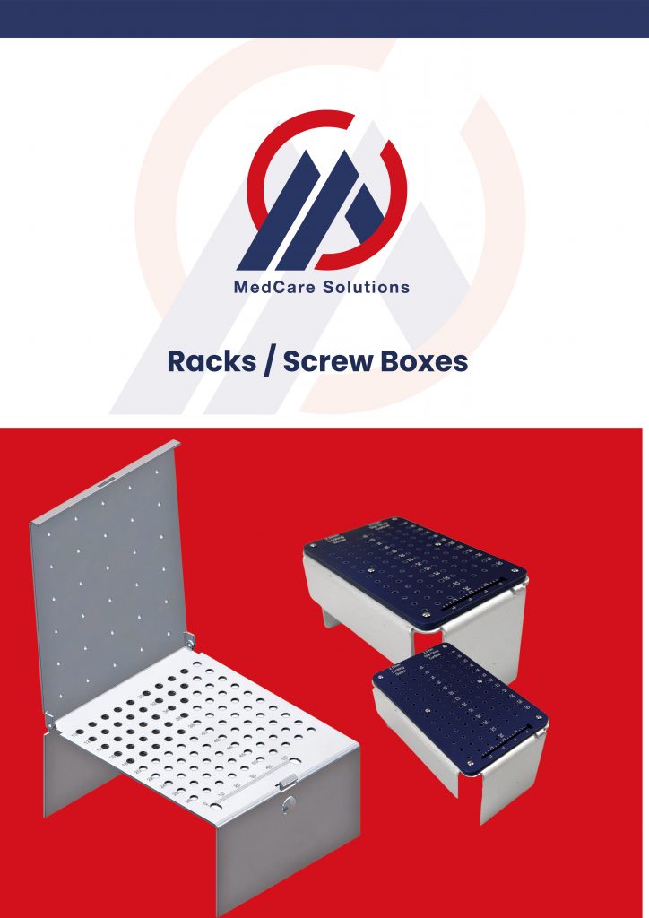 Sterilisierbare Schraubenboxen zur hygienischen Aufbewahrung orthopädischer Schrauben mit klarer Kennzeichnung zur schnellen Identifikation.